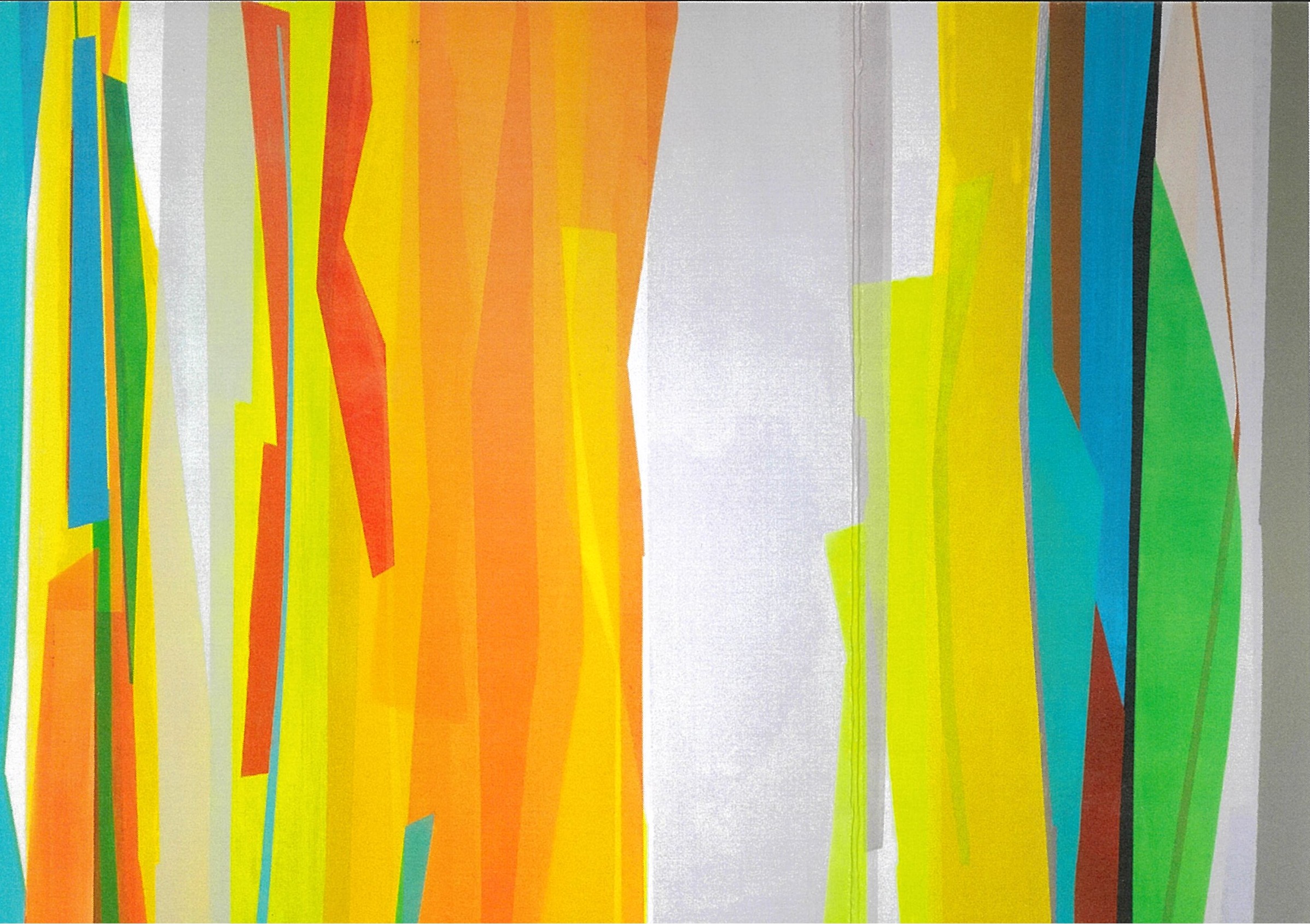 작가의 화면은 선들의 배열, 간격, 두께, 밝기와 어두움의 변화가 중첩되며 고유한 리듬과 장단을 형성한다. 이는 마치 빛의 파동이 조율되며 하나의 선율을 만들어내는 과정과 유사하다. 물리적 윤곽을 제거한 화면은 경계 없는 공간을 암시하며, 색채는 스펙트럼의 흐름 속에서 조형 언어가 아닌 빛의 시간성을 드러낸다.